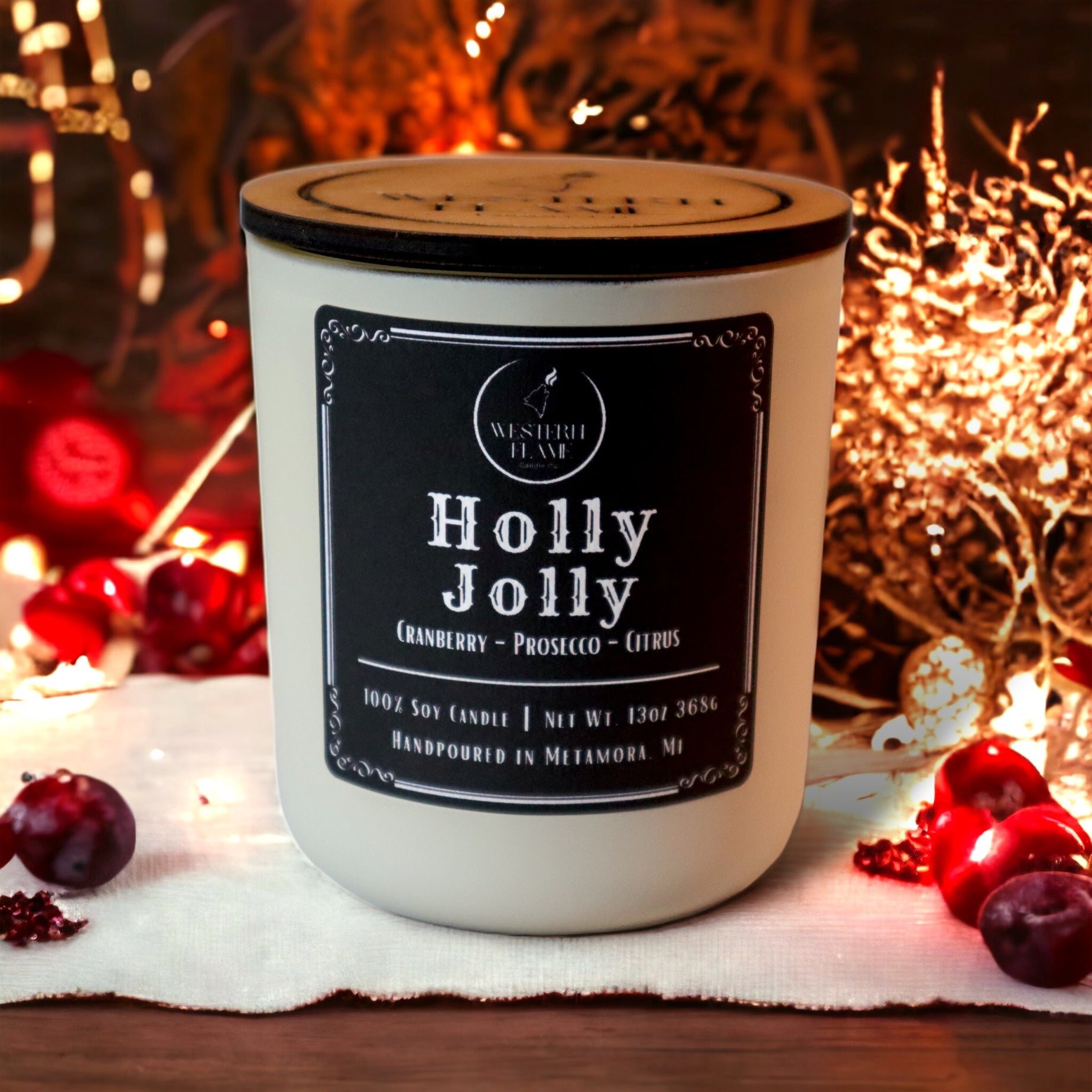 Gather 'round, folks, and meet "Holly Jolly," a candle that brings the joyous spirit of the Old West to life, capturing the sparkling scent of cranberry champagne with a sweet twist. Imagine the spirited gatherings in Western saloons, where the delightful notes of cranberry, prosecco, citrus, and praline candy meld together like laughter during a festive "Holly Jolly" celebration.