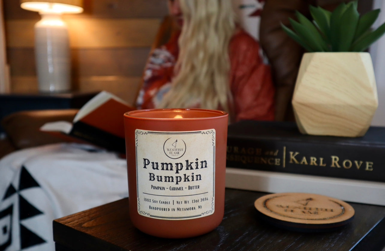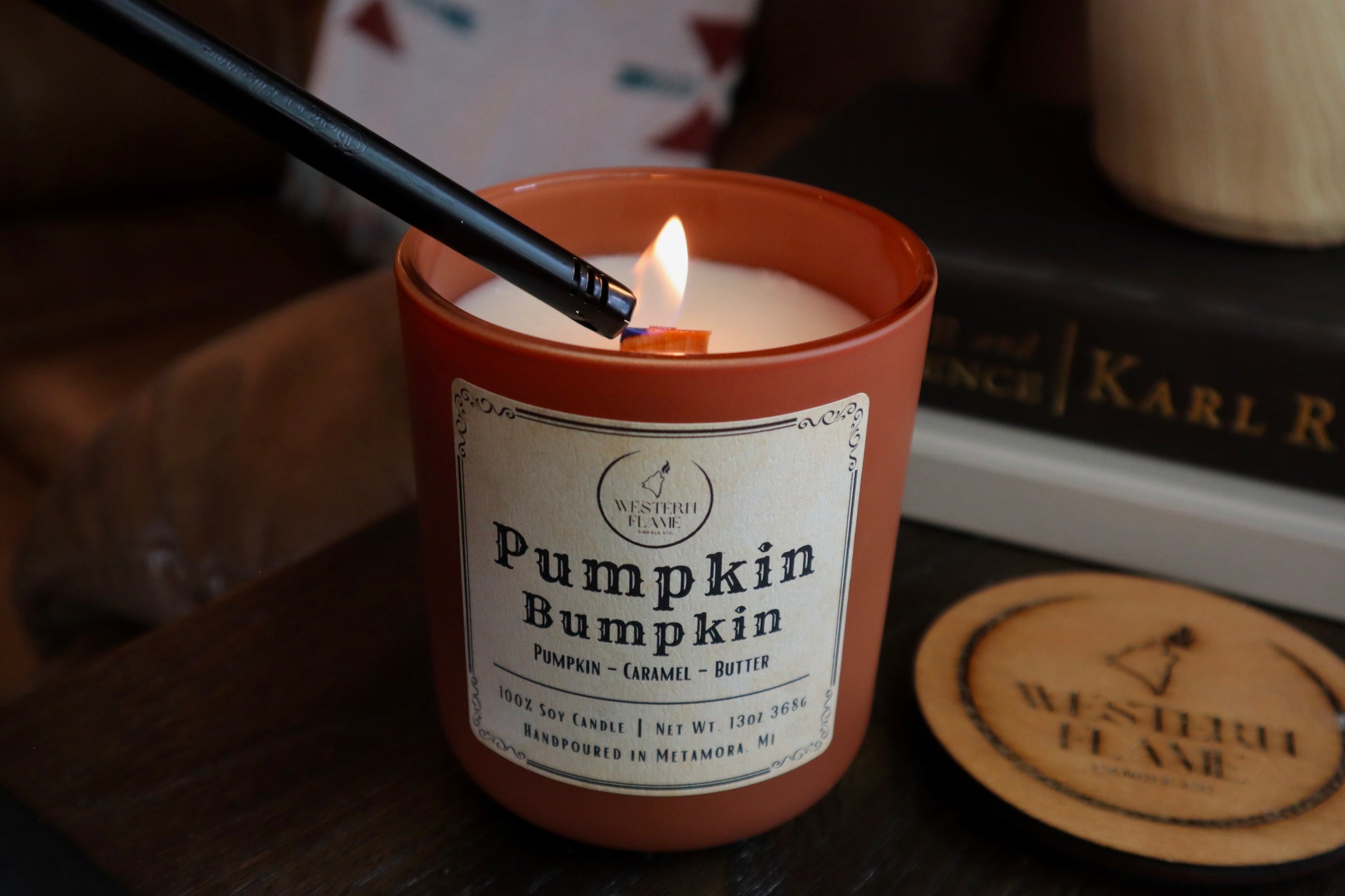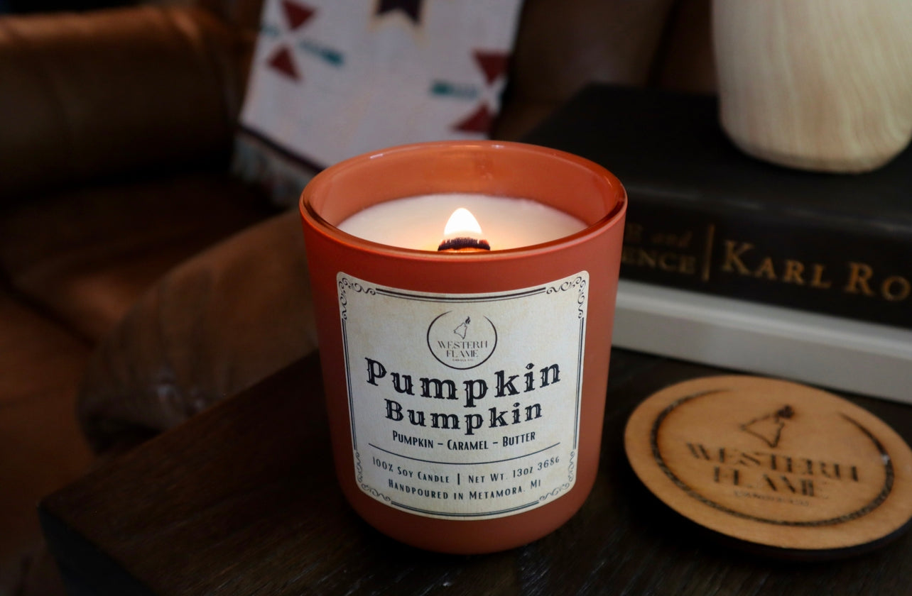 "I recently indulged in the delightful experience of burning the 'Pumpkin Bumpkin' candle, and I am absolutely enchanted. From the moment I lit the wick, my senses were greeted with the warm, inviting aroma of spiced pumpkin and rich caramel. It's like a tasty dessert captured in a jar.